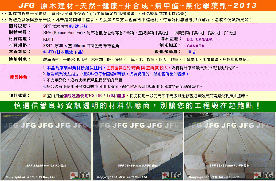 JFG 原木建材~天然~健康~非合成~無甲醛~無化學藥劑~2014 |