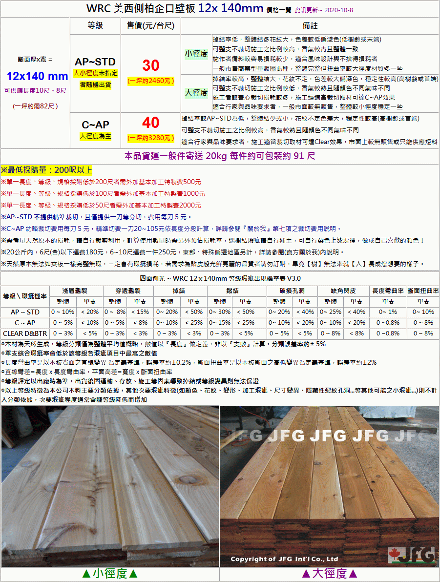 優質原木建材~WRC12x140mm 壁板 AD S4S